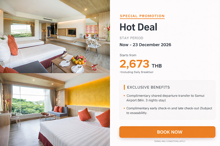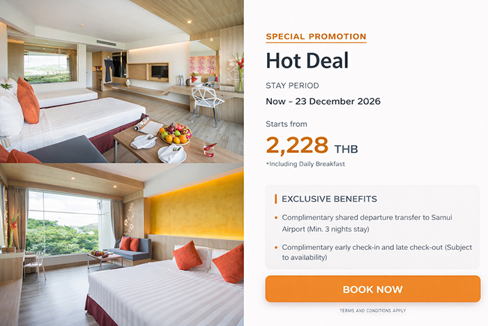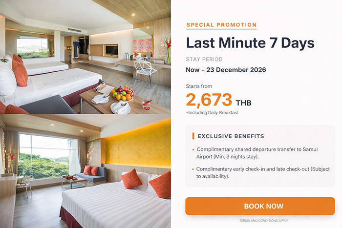 Just a short walk from Central Samui Shopping Mall, local markets, restaurants, sightseeing spots, and Chaweng’s famous nightlife, Matcha Samui Resort offers the ideal balance between relaxation and excitement.